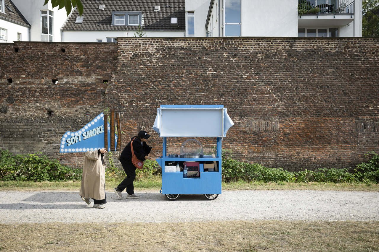 BP: After Corona I started looking for a more flexible and sustainable format than the Ruhr Ding – one that differs from setting up a huge exhibition for a short amount of running time and then dismantling it again. The idea was to approach people through the means of art, rather than trying to attract visitors who then travel to see a stationary exhibition. The concept of course relates to a long tradition of traveling artists, but it also works like a fairground or a circus. It is crucial that we don’t just show up at a random location, but that each stop is an artistic exploration of the location. We want to incorporate the circumstances into the design, regardless of whether it is a central town square or a wasteland on the outskirts. Our goal is to create a space for encounters, a place for exchange and imagination.