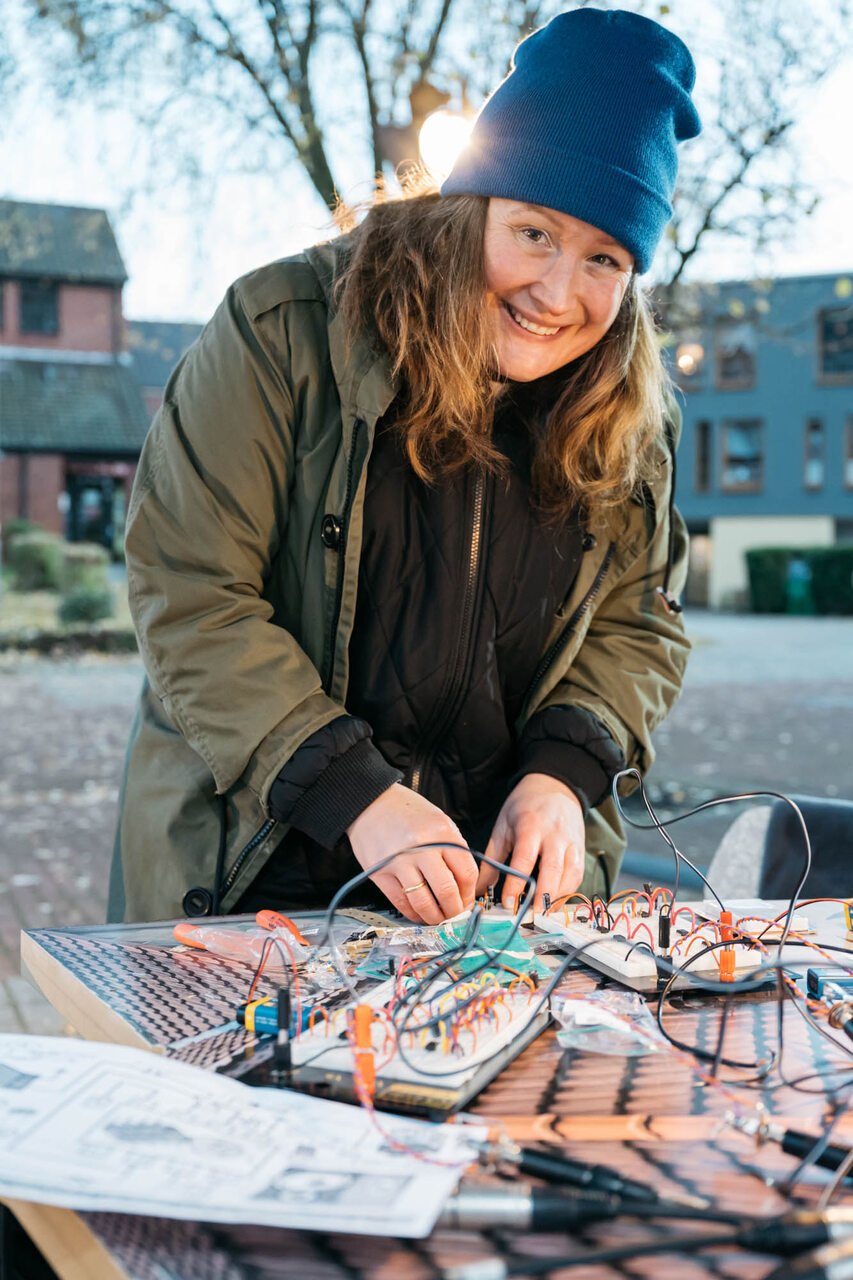 Darsha Hewitt, “Repairing in Hünxe” (sound installation), 21.11.2024, “Grand Snail Tour”, Hünxe, photo: Daniel Sadrowski. Image courtesy of Urbane Künste Ruhr.