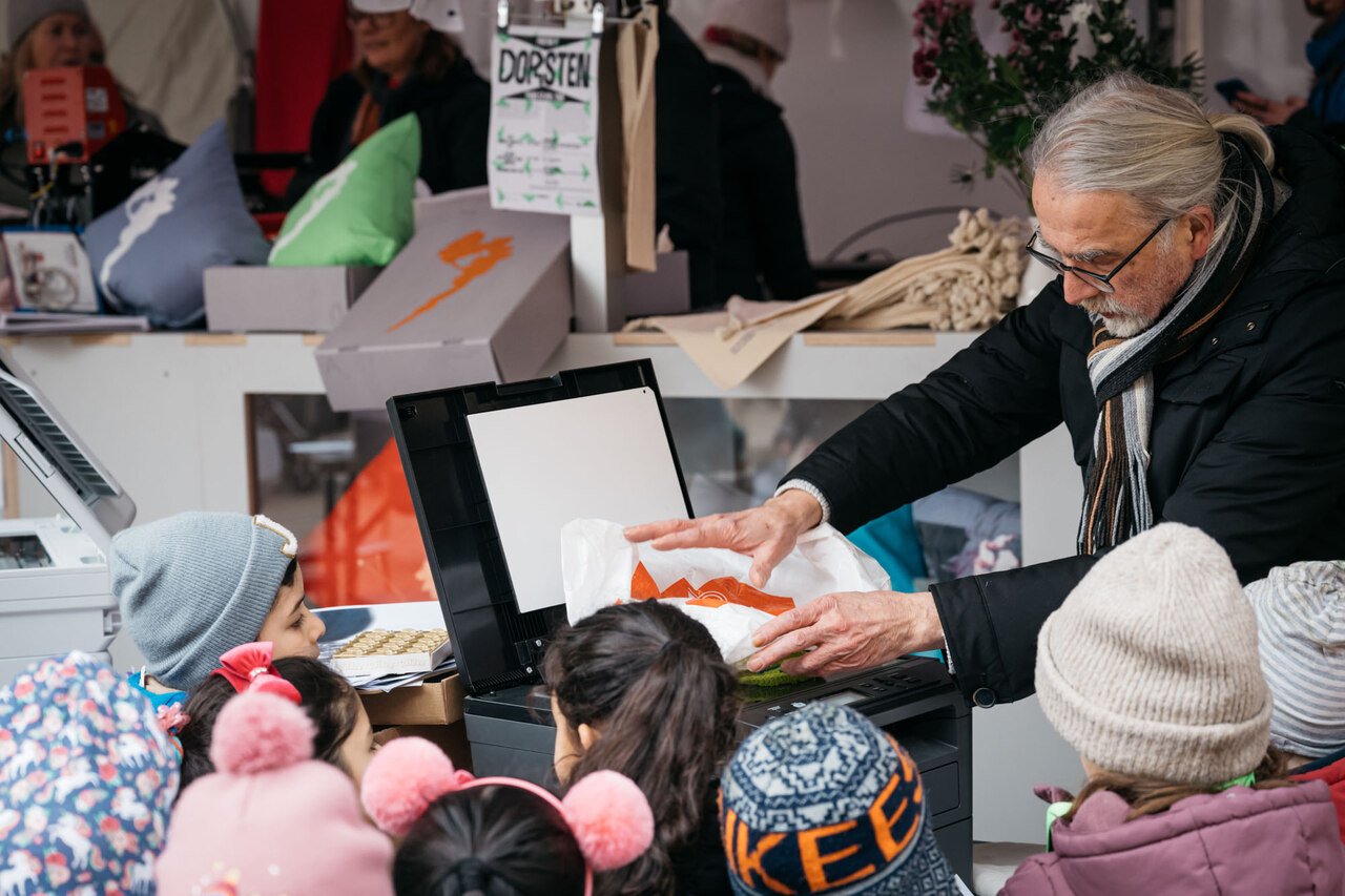 Klaus Urbons from the Museum für Fotokopie (Fotocopy Museum) introduces children to copy art for “Printing in Dorsten”, 23.01.2025, “Grand Snail Tour”, Dorsten, photo: Daniel Sadrowski. Image courtesy of Urbane Künste Ruhr.