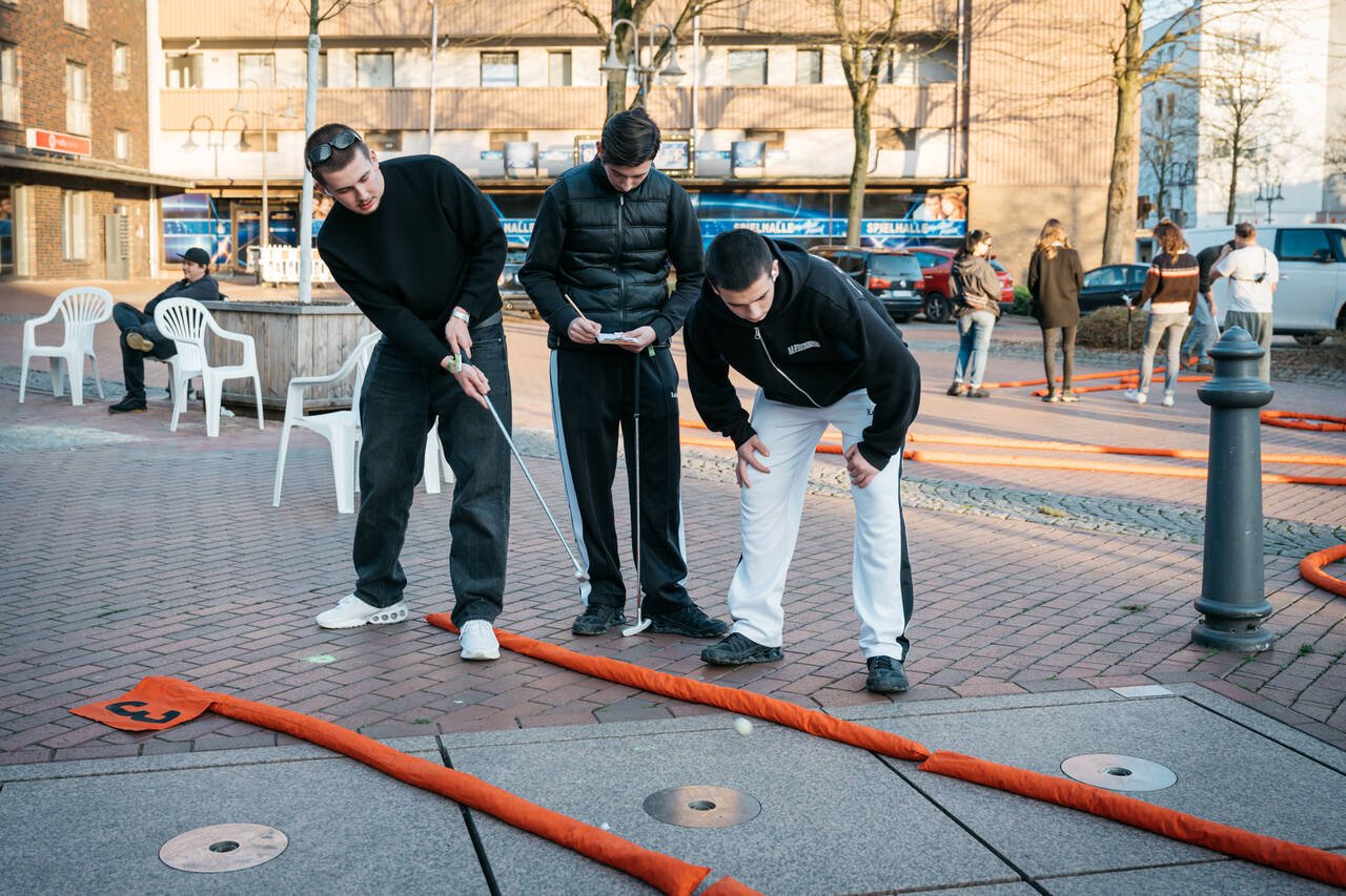 Sowatorini Landschaft, “Golfing in Oer-Erkenschwick” mobile golfing platform, 27.03.2025, “Grand Snail Tour”, photo: Daniel Sadrowski. Image courtesy of Urbane Künste Ruhr.