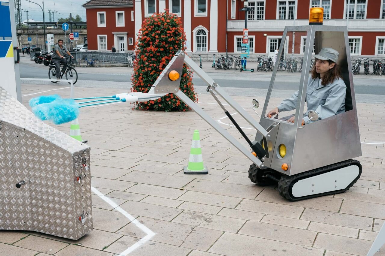 “Cleaning in Hamm”, 28.08.2025, “Grand Snail Tour”, Hamm, photo: Daniel Sadrowski. Image courtesy of Urbane Künste Ruhr.
