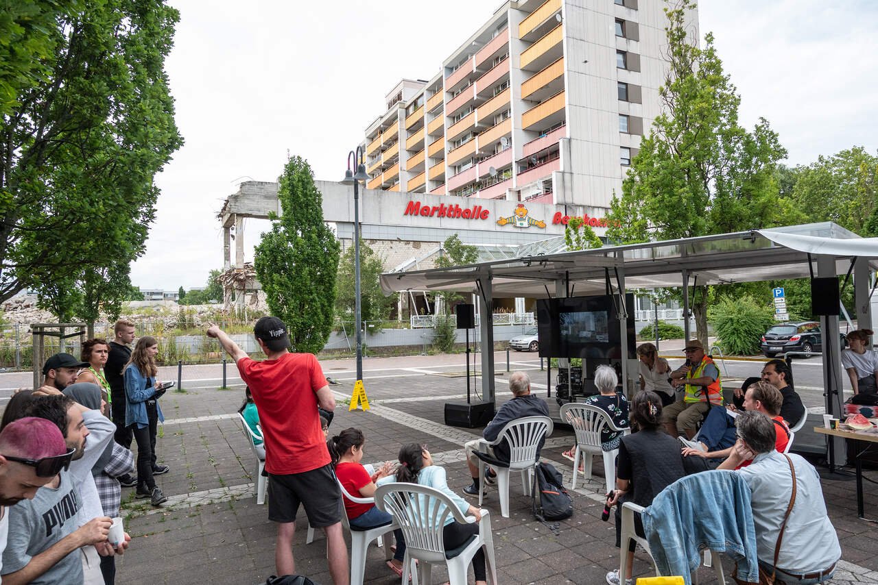 “Who owns public space? Who speaks and is heard, who is seen and who is overlooked?” Questions posed during “Appreciating in Dortmund”, 03.07-05.07.2025, “Grand Snail Tour”, Dortmund, photo: Amina Falah. Image courtesy of Urbane Künste Ruhr.