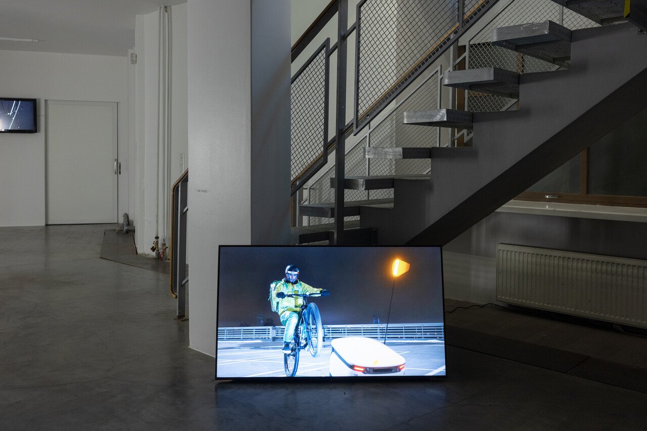 The speculative continues in Karel Koplimets’ video work Your Order Is on Its Way (2021), where in cool and dark tones, he constructs a near-familiar world in which automation quietly replaces human labour – a transition already underway, of course. The work doesn’t sensationalize this shift; instead, it lingers in its uneasy middle stage, where humans and machines still coexist but the balance is visibly tipping. This calm and realistic scenario is much more unsettling, because it shows us how the transition has already accelerated during the last 20 years without us really noticing the day-to-day changes.