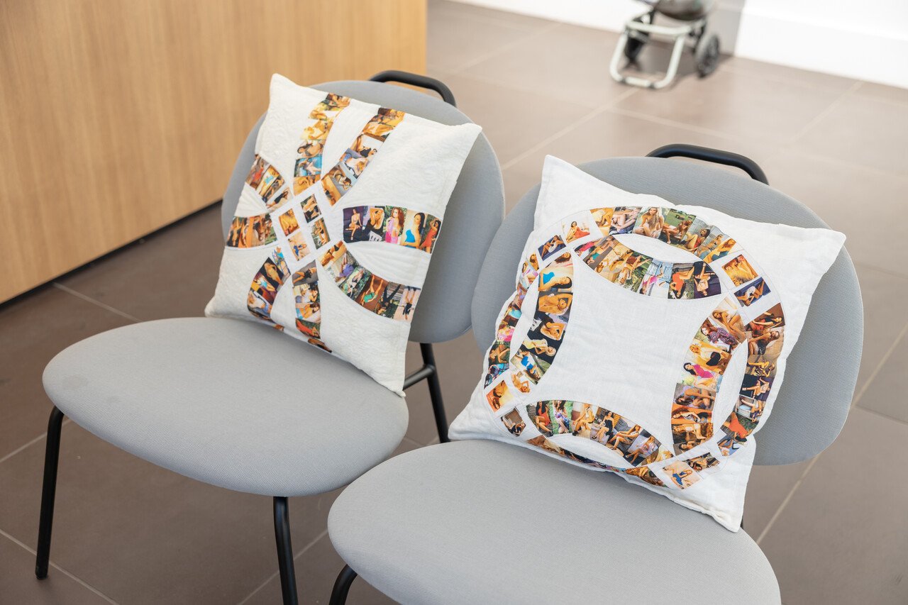 When I look again at Bogush’ cardboard box, it strikes me that it also looks considerably second-hand, and Öllek’s plastic water tank has the same trashy aesthetic as Ketamo. As such, all three artists in this gallery are quite connected, at least visually, to a second-hand and ecological approach. From that perspective, the last artist in the FOKU gallery, Maria Kapajeva, is distinct from the rest. In her work, I Am Usually Woman (2013), her mother has quilted pillows and a blanket with numerous photos of women from Eastern Europe who are posing to find a man to marry in England, where the artist is based. This is the first instance of literal photos, resourced from the internet and printed on a quilt, connecting them to an intimate and domestic situation. The video, Test Shooting (2016), portrays a middle-aged British male actor posing for the artist while being given the instructions normally written for the aforementioned women trying to find a Western husband. Despite its quite literal, perhaps trite, turning on its head of gender roles, it is a simultaneously humorous and poignant piece. Watching the amateur actor pose almost naked and trying – horribly – at the feminine poses, put a smile on my face in an otherwise quite somber and serious show. At the same time, the artist succeeds in giving these women from the photos credit for their hard work in the struggle for a better life, while not neglecting a critique of the power structures that make such work necessary.