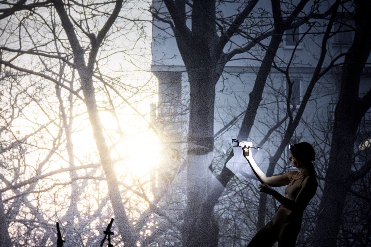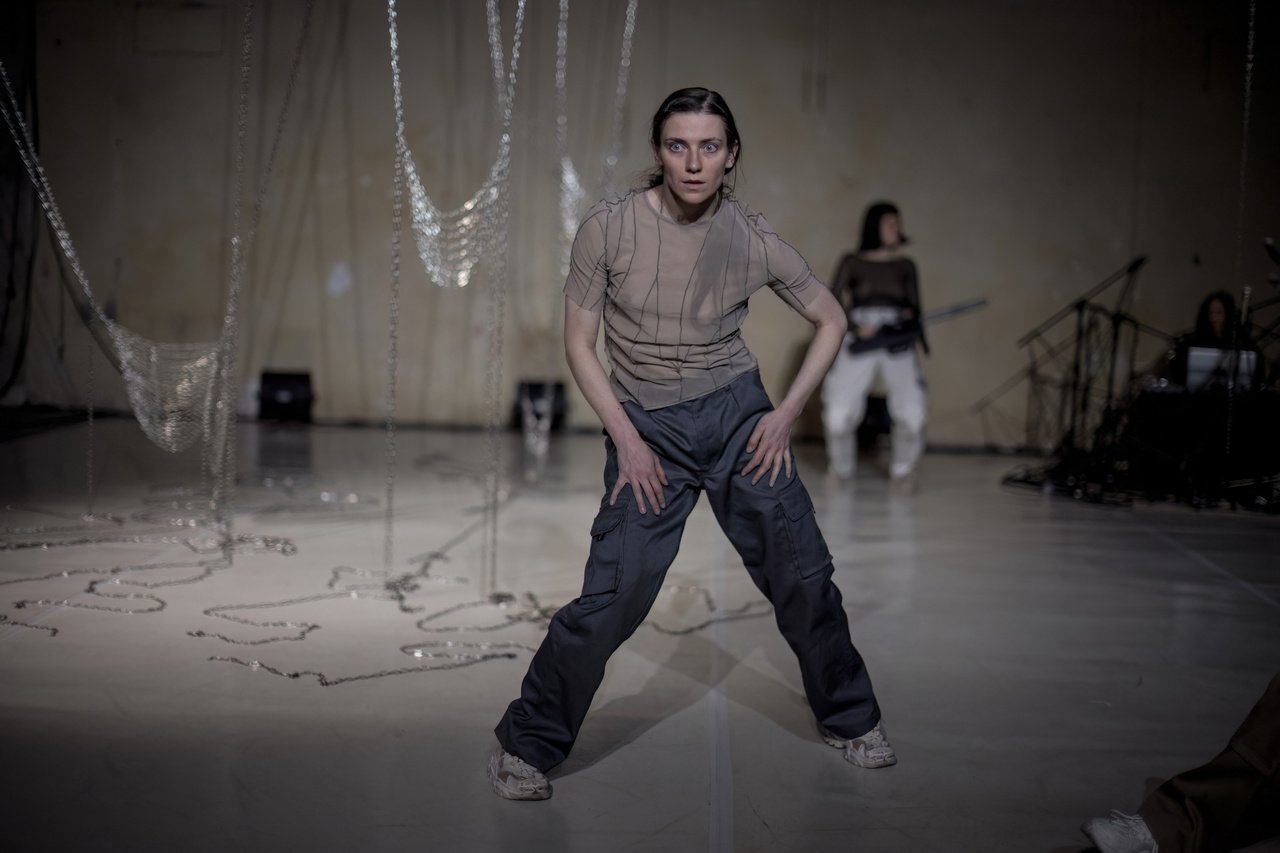 Magda Szpecht, “She stands in the middle of a battlefield”, performance view, 20.03.35, Archa-plus, Prague, photo: Vojtěch Brtnický. Courtesy of Vojtěch Brtnický.
