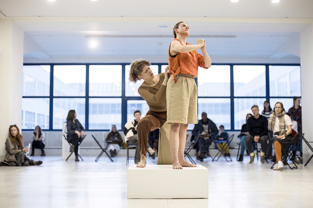 Sabina Bočková, “Making love”, performance view, 30.03.25, AVU Veletržní, Prague, photo: Vojtěch Brtnický. Courtesy of Vojtěch Brtnický.