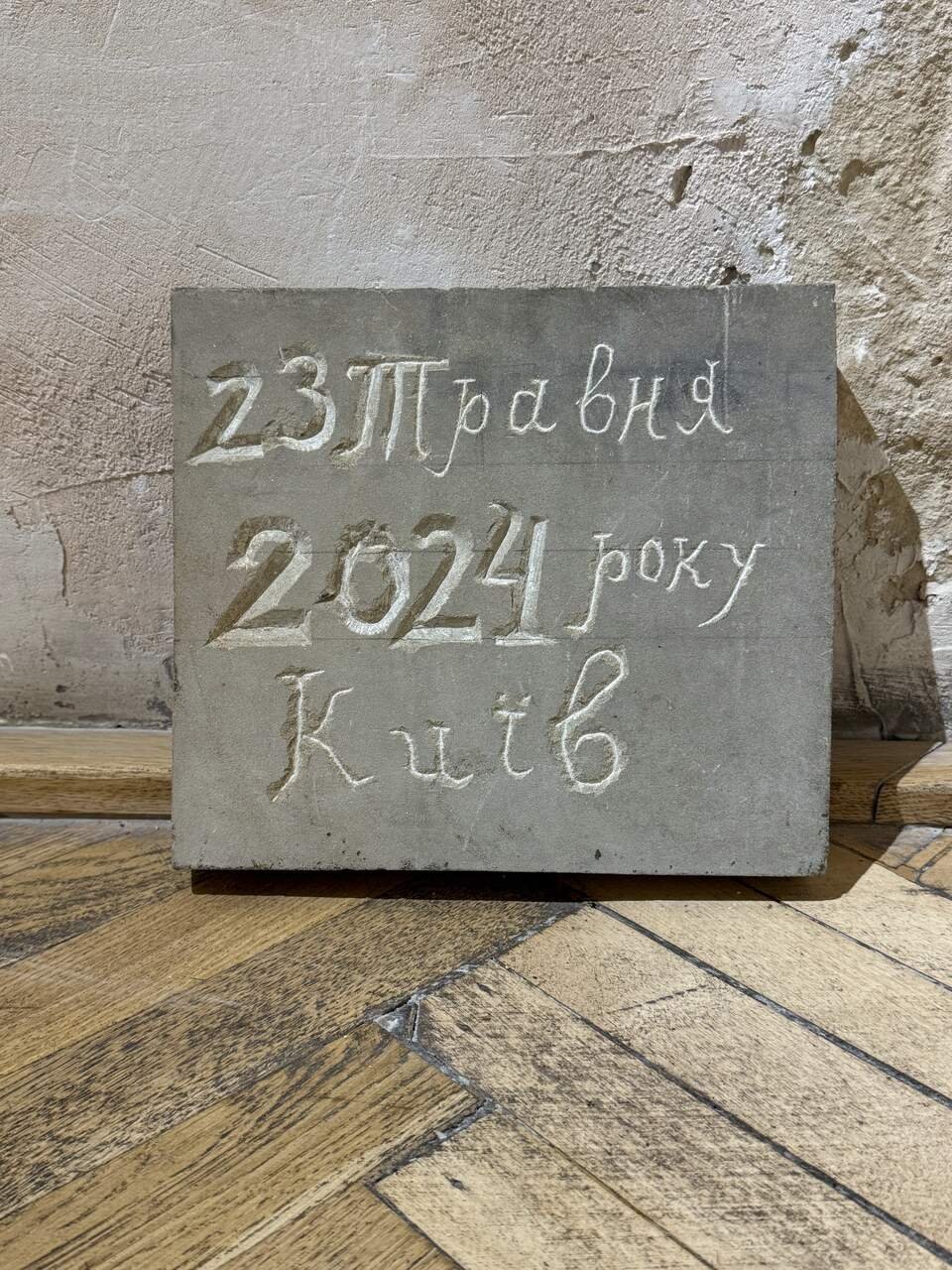 In August 2024, Vitaliy produced an in-situ work for the exhibition Sense of Safety at YermilovCentre – one of a few active cultural hubs in Kharkiv, a large city next to the russian border under constant shelling. The artist engraved “This is evidence of the presence. 18.19. August 2024” directly on a concrete pillar of the gallery to make it a permanent part of its interior. The date engraved indicated exactly the period he was working on the commission, being present and performing his labour there and then. This seemingly simple gesture raised several questions: How do we safeguard small gestures and personal recollections in an age of collective narratives, such as an unfolding war in one’s home country? How do we support the preservation of these recollections in the digital era, when anything can be conjured and consumed in seconds, but also, due to that very fact, can also lose its value in the same span of time? And, what kinds of memories do we consider meaningful anyway, when we live in a post-truth epoch when, to paraphrase a line from Rainer Maria Rilke’s poem, no memory is final?[2]