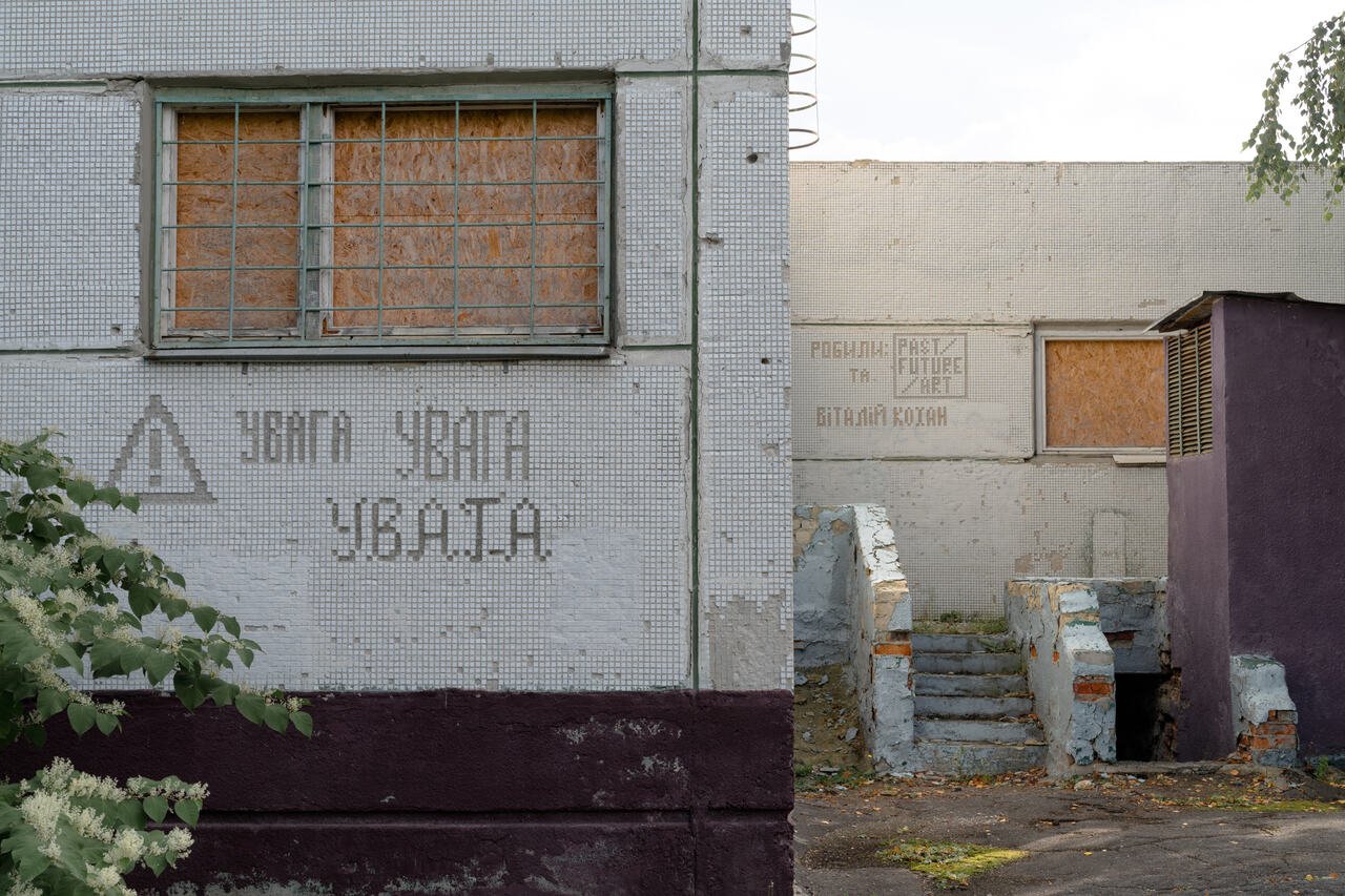 Kokhan refers to his mural work as a “tattoo.” The building, a metaphor for the human body, which translates its inner condition, senses, thoughts, and memories to the outer world through its “skin” (surface) in a clear visual language. Unlike celebrity street-artist Banksy, whose murals in liberated districts of Kyiv which were made in 2022, were severely criticised for their superficial nature and lack of real connection to the community’s sense of tragedy, Kokhan created his humble statement after numerous conversations with local community and council, initiated and facilitated by Past/Future/Art. “The most interesting thing in art for me is that when something new is created, you cannot imagine how things were before it existed,” the artist speculates on his idea of art’s general purpose. The time to summarise any collective experience and install big, solid monuments is yet to come. The precarious status of Kokhan’s monument reminds us not only of the shaky nature of our own memories, but also of our desire to enshrine, even if only for the time being, things big and small, which may be important simply because they happened to us.