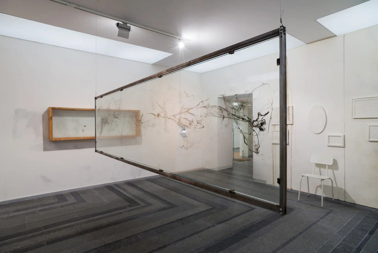 In his pre-war practice, Vitaliy was mostly focused on what I dare to describe as the elusive allure of the world, material and immaterial, addressed both in terms of form and content. He usually worked with solid materials such as stone, marble, concrete, and various types of metal – the body of his oeuvre was remarkably substantial. In contrast, he also occasionally experimented with more ephemeral elements such as a spider’s web, or growing crystals (for example, Objects with Contingent Marks of Natural Processes, 2018, which was included in the exhibition of artists shortlisted for the PinchukArtCentre Prize that year) or natural, found materials as seen in his countless contributions to Borderline Space land art symposium from as early as 2004 (Mohrytsia village, Sumy region), or even a shadow (Shadow Concentrator, 2023, for Internally Displaced Landscape project). In all of those cases, his careful attention to expose the material’s tactile realness was far from mere formal playing around or striving for decorative appeal. It rather dealt with deconstructing the nature of each chosen material or medium to reveal its own uncultivated beauty. And by doing this, he guided us in finding the same integral qualities in the surrounding world. We tend to put mind over matter when interacting with art; Kokhan challenges our preconceptions and gently pushes us to acknowledge its raw physicality alongside the feelings it opens up within us.