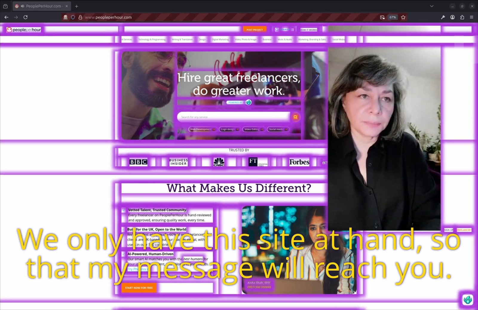eeefff: We are interested in the labor hidden behind smart systems. Inside of Outsourcing Paradise (Parasite), we made an algorithm that functions on top of the existing web pages that starts to eat the different content of a website, from the smallest to the biggest, if you are not moving your mouse for some time. It was an outcome of the gatherings we made for outsourcing workers and together with them, where we tried to imagine the possible workers’ club. We use this hack on our website, and proposed other people use it as an extension or as a plugin for some websites with which they have some relations. That destroys the usual way websites are working, because we are used to the user-friendly interface, but this is kind of an error-friendly interface. So if you are not active on this website, it will disappear. It will be eaten by the “outsourcers.” This is an imaginative space of outsourcers (those who create the contemporary algorithmic reality and are hidden behind the veil of microtasks) with whom we worked for several months. We went through different exercises, and now they are montaged on top of each other.