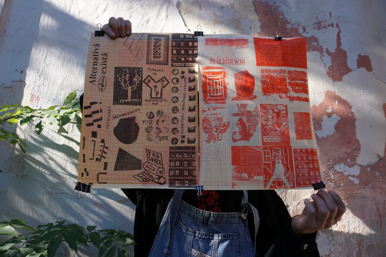 Satelit Association x Drujba Collective, “IF THIS A COLLECTIVE ACTION?” zine production, 2024, riso print, produced during the workshop “3rd Space Shipheld in the frame of “Observator project” (Iași). From the archive of 3rd Space Studio (Chișinău). Image courtesy of 3rd Space Studio.