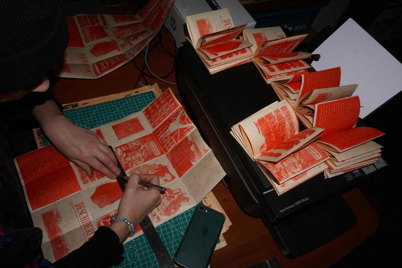 This was a collaboration not only between people but also between spaces. The first part of the lab was organised in the House of Culture in Hîrtop, where participants collected material for the spreads and where the studio operated as a mobile publishing house. The second part focused on postproduction, presentation, and distribution. This part took place in Chișinău, at 3rd Space Studio — a place that has always strived to recreate, maintain, and preserve logic of the House of Culture, this institutional heritage and function in society. Even with a reduced level of capabilities, this model of a cultural institution can be implemented not only for visitors seeking entertainment or consumption, but also as an opportunity for those who want to try themselves as cultural producers.