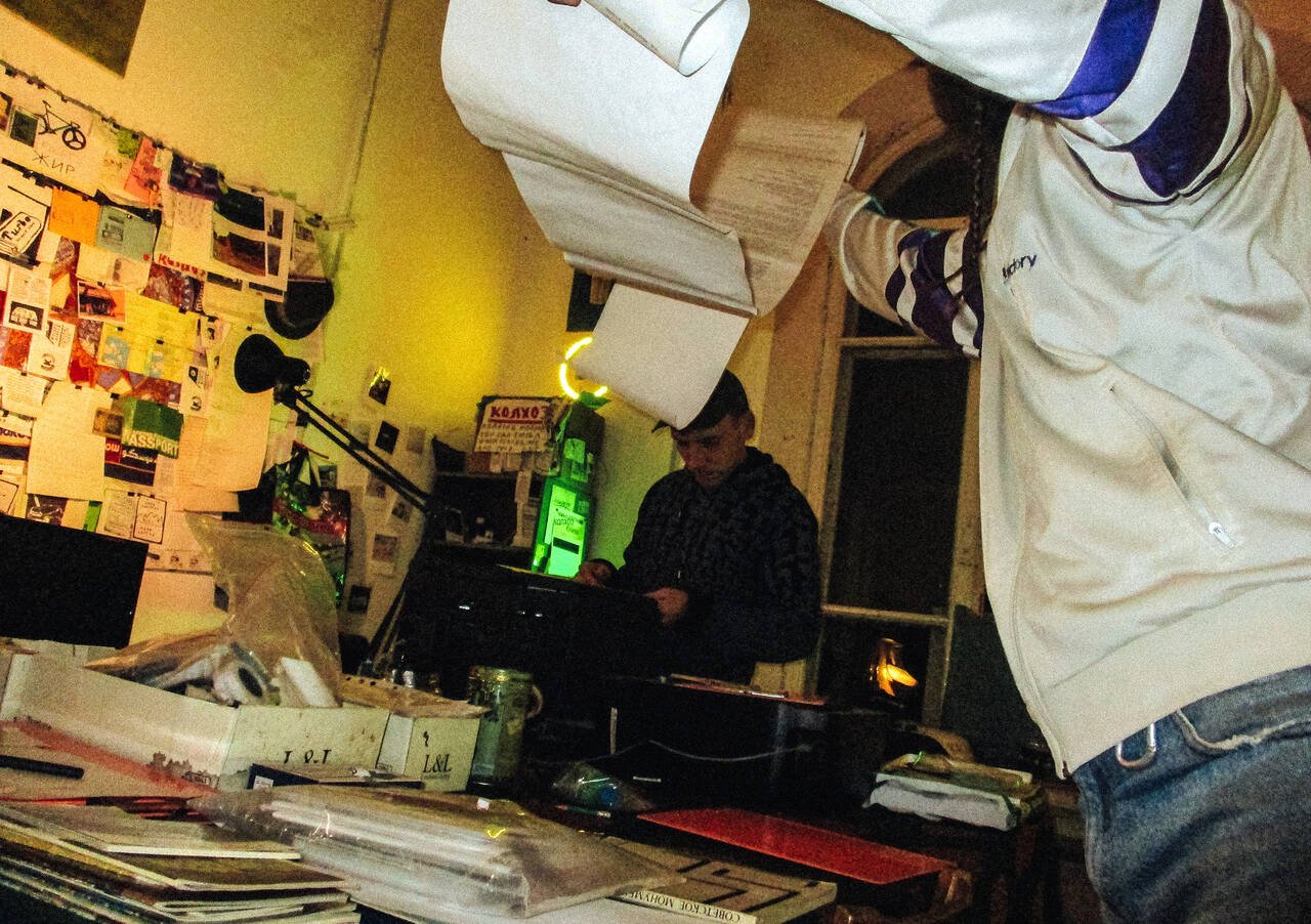 The aforementioned layers forming the context are important for the description of the samizdat practices located in Casa Zemstvei because they do, in many ways, determine the means of operation. Material conditions shape this cheap printing outlet, which maintains relevance to the local ecosystem. The intention to operate within a specific mode of collective production was driven both by challenges that could not be resolved alone and by an attempt to formulate a response to the noticeable dominance of individualism in the turbo-capitalist regime of art and cultural industries. These intentions were initially enshrined in the name itself – 3rd Space Studio – explained as a kind of paraphrasing of the socio-cultural concept “The Third Place,” as proposed by Ray Oldenburg in his book The Great Good Place (1989) to designate communal place as distinct from the home (first place) or job (second place).