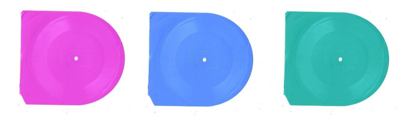 CEVA Performing Arts Educational Center x Drujba Collective x Zvukotok Sound Studio, “KRUGOZOR. CEVA DIN JUR” zine, 2023, page-envelopes for the CDs containing the sound part of the zine styled after color flexible vinyl discs. From the archive of 3rd Space Studio (Chișinău). Image courtesy of 3rd Space Studio.
