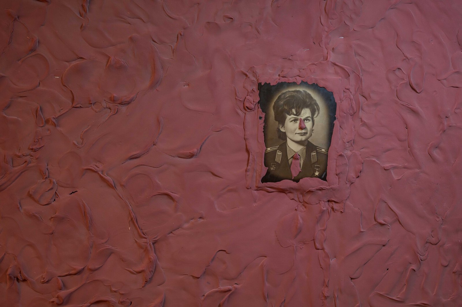 Time travel and other sci-fi tropes are often tied to futuristic technologies, to visions of possible futures. Yet even when science fiction is set in other, often remote space-times, the genre essentially reflects contemporary desires and anxieties back to us. Andrei Tarkovsky’ s Soviet sci-fi classic Solaris (1972), for instance, transforms a space voyage into a journey into the human psyche. In the sensorily impoverished and hostile environment of the space station, hallucinations, ghosts, and dreams burst forth – apparitions that unleash destructive force yet also enable confrontation with the past and make the present more bearable.6 In this lineage – and unlike sci-fi that imagines generative, utopian futures – Kovalčíková’ s paintings carry something distinctly dystopian and unsettling. Here, gravity falters, orientation slips, and figures drift across the corroded surfaces within an iconography drawn from disparate historical and contemporary sources: from Ancient Greek mythology and Roman coin portraiture, from Renaissance painting and baby yoga manuals, from advertisements and banknotes to sex toys and cigarette butts. Through collage, she incorporates material fragments from everyday life into the picture plane, as if the image wanted to devour as much of the world as possible. If Kovalčíková’ s pictorial worlds have hitherto been populated by androgynous figures, this new series foregrounds and pays homage to female companions, real and fictive.